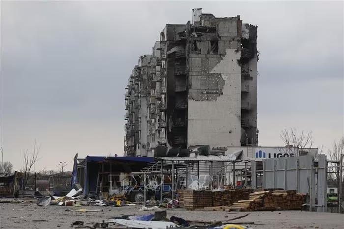 Tòa nhà bị hư hại do xung đột tại Mariupol, Ukraine. Ảnh minh họa: THX/TTXVN