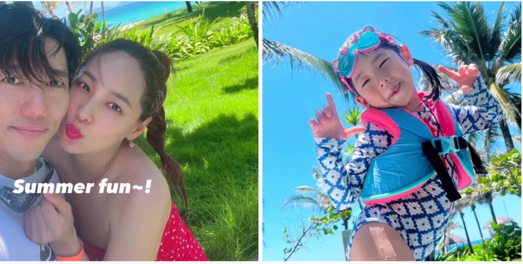 Vợ chồng diễn viên Eugene và con gái yêu thích phong cảnh Nha Trang. Ảnh: Instagram Eugene