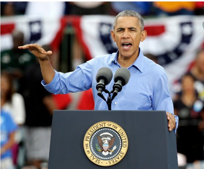Ông Barack Obama tại cuộc vận động tranh cử năm 2016 cho ứng cử viên tổng thống đảng Dân chủ lúc bấy giờ là bà Hillary Clinton ở Florida. Ảnh: AP.