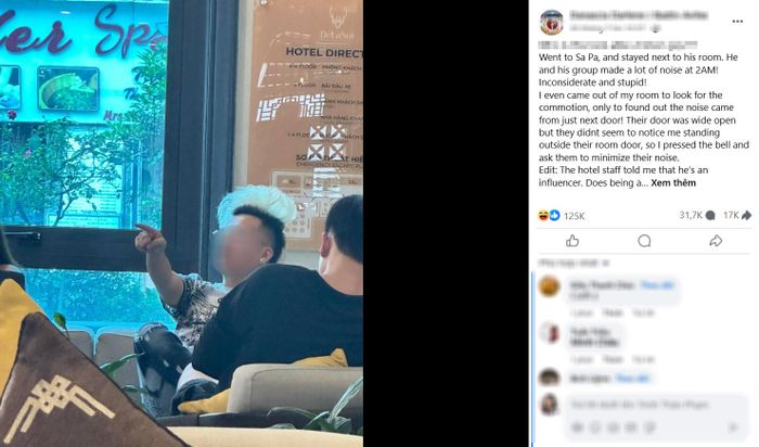Sau đó, nữ du khách phản ánh sự việc với lễ tân khách sạn và nhận được phản hồi từ nhân viên rằng, nam thanh niên gây ồn trên là 1 người có sức ảnh hưởng trên mạng xã hội (influencer).