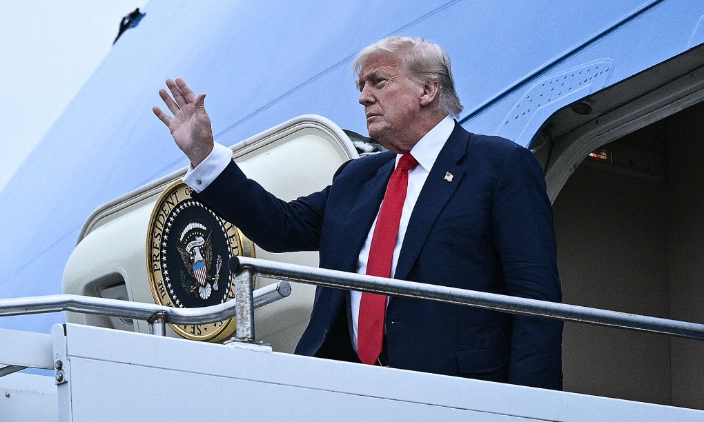 Ông Trump hạ cánh xuống sân bay Glasgow, Scotland, ngày 25/7. Ảnh: AFP