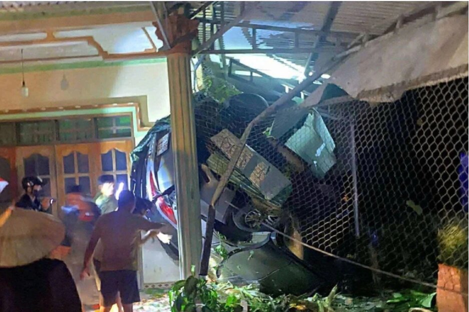 Khi xe chạy đến xã Tân Tiến, tỉnh Đồng Nai, phương tiện bị mất lái lao thẳng vào nhà dân bên đường khiến hàng rào sắt đổ sập. Ô tô bị mắc kẹt giữa trụ mái hiên và hàng rào sắt, tài xế C. tử vong sau đó.