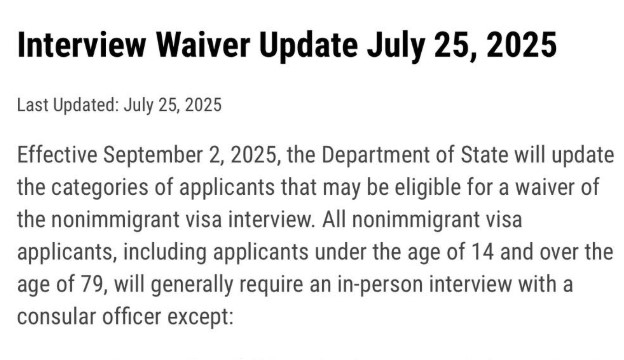 Như vậy, từ 2/9/2025, gần như tất cả người nộp hồ sơ xin visa không định cư (du lịch, công vụ, học, làm việc…) sẽ buộc phải phỏng vấn trực tiếp tại lãnh sự, chỉ trừ một số loại visa ngoại giao; chính phủ, và các visa du lịch B1/B2 thoả điều kiện gia hạn.