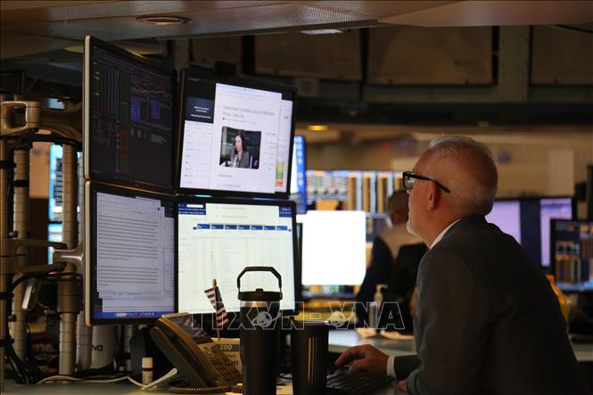 Giao dịch viên tại sàn chứng khoán New York, Mỹ.
