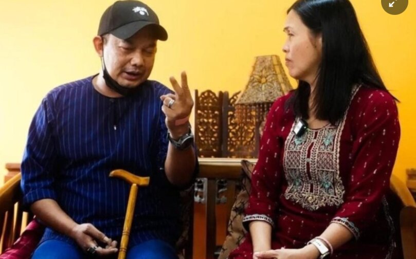Mohd Shah Rosli (bên trái) bị liệt nửa người sau đột quỵ. Ảnh: Finas Malaysia/Facebook.