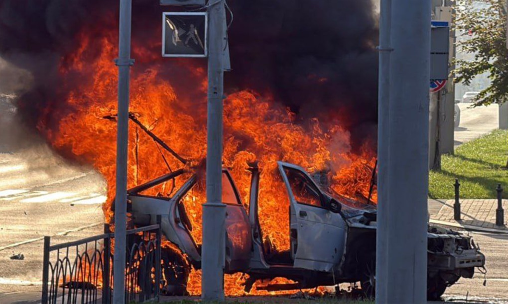 Ôtô bốc cháy tại Belgorod, Nga sau đòn tập kích UAV của Ukraine hôm 14/8. Ảnh: Văn phòng tỉnh trưởng Belgorod