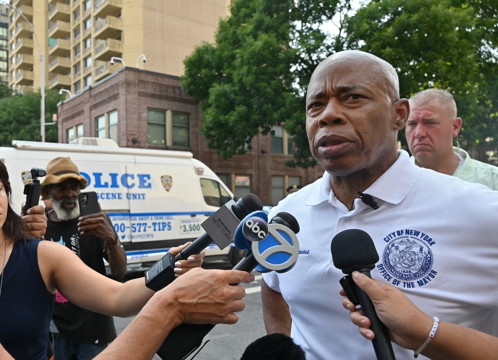 Thị trưởng New York Eric Adams phát biểu tại hiện trường vụ xả súng ngày 17/8 tại vũ trường ở khu Brooklyn. Ảnh: AFP