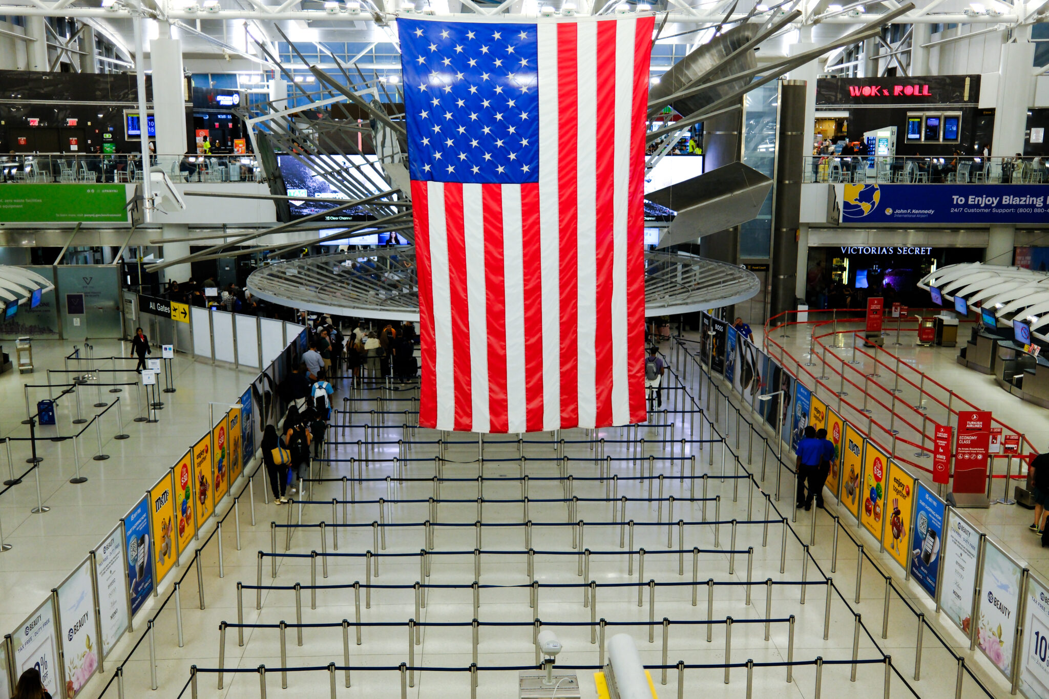 Lá cờ Hoa Kỳ ở phi trường quốc tế JFK, New York ngày 15/8/2025. (Ảnh minh họa: CHARLY TRIBALLEAU/AFP/Getty Images)