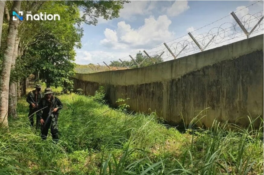Thái Lan và Malaysia đã xây dựng 110 km tường biên giới ở một số địa điểm dọc biên giới hai nước để phòng chống tội phạm xuyên biên giới. Ảnh: The Nation