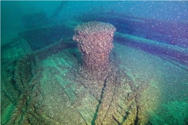 Xác tàu F.J. King đắm dưới hồ Michigan vừa được phát hiện. Tời tàu đã bị bao phủ bởi loài trai quagga xâm lấn