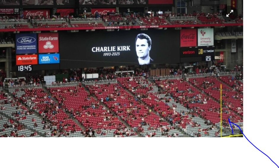 Người xem Giải Bóng bầu dục Quốc gia Mỹ dành một phút mặc niệm cho Charlie Kirk vào tối 11/9, tại sân vận động StateFarm. Ảnh: NBC Sports.