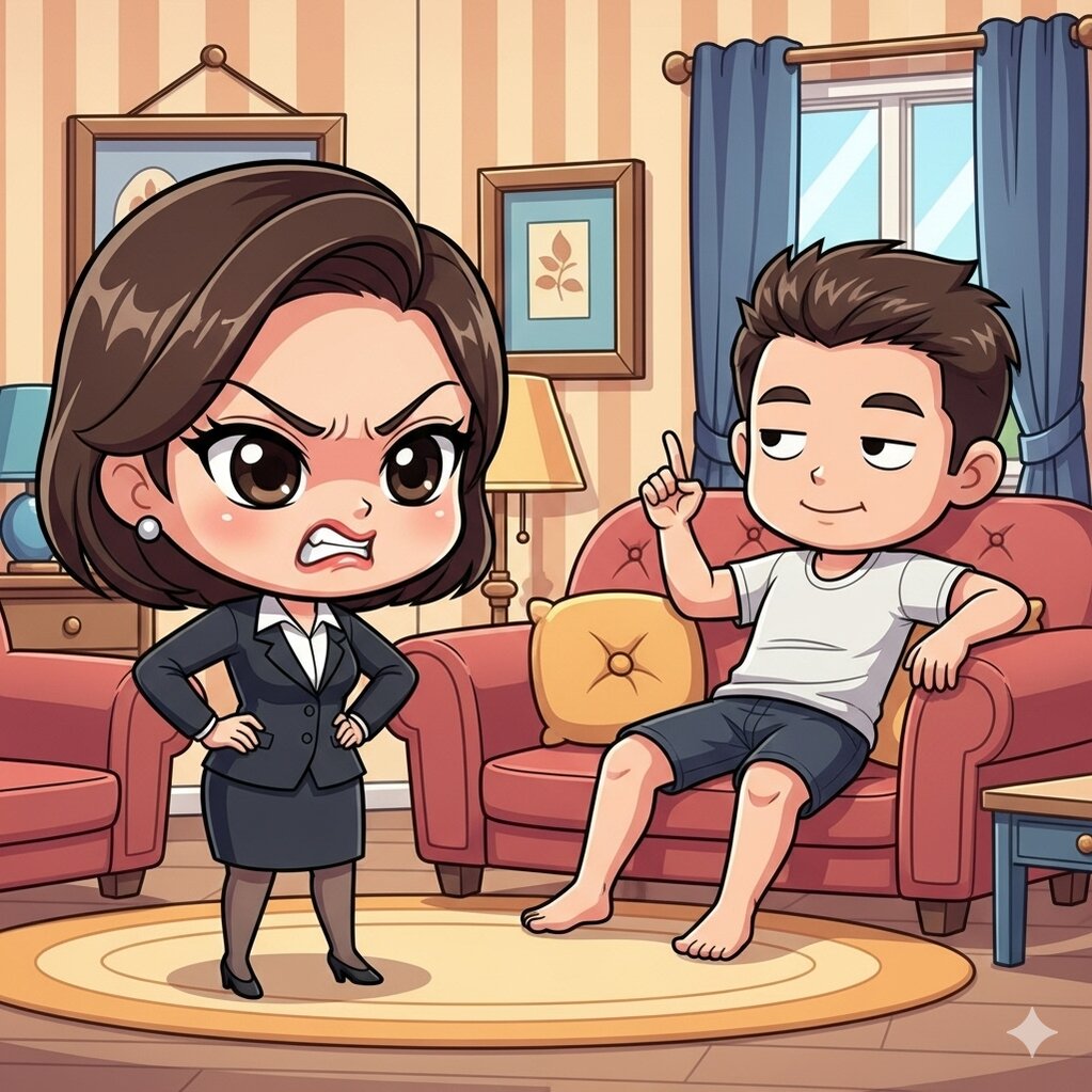 Vợ đi làm về, mặt hầm hầm.