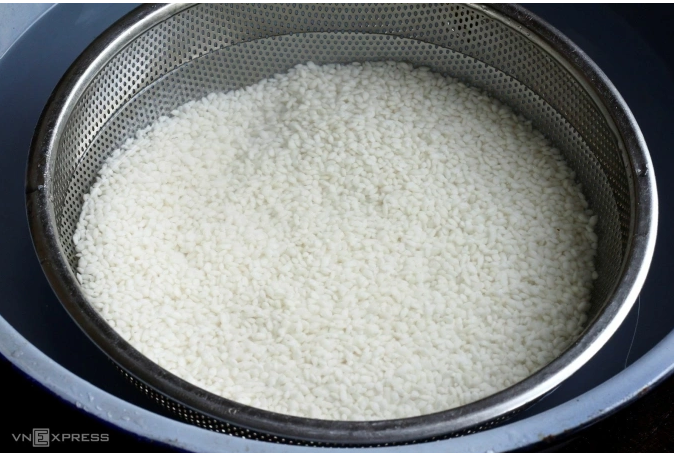 Người nội trợ có kinh nghiệm thường ngâm gạo nếp 6-8 tiếng trước khi đồ xôi. Ảnh: Bùi Thủy