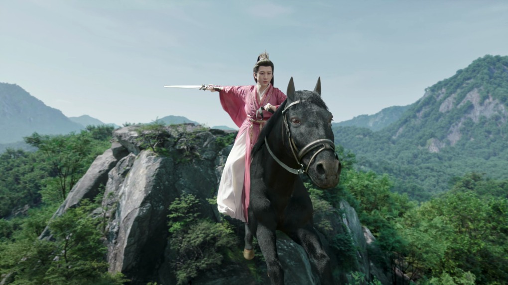 Tiêu Thu Thủy phi ngựa từ vách núi xuống mặt đất. Ảnh: Sohu