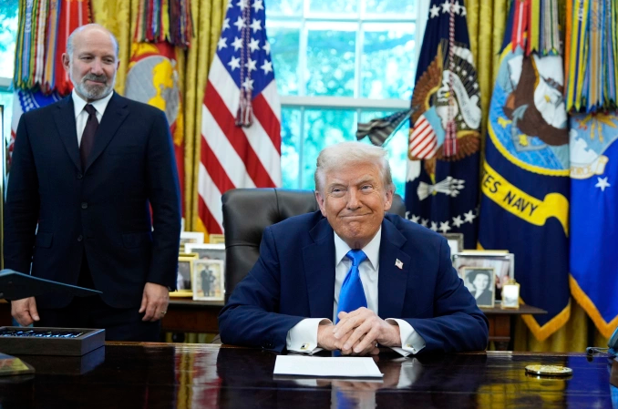 Tổng thống Mỹ Donald Trump và Bộ trưởng Thương mại Howard Lutnick ở Nhà Trắng ngày 19/9. Ảnh: AP