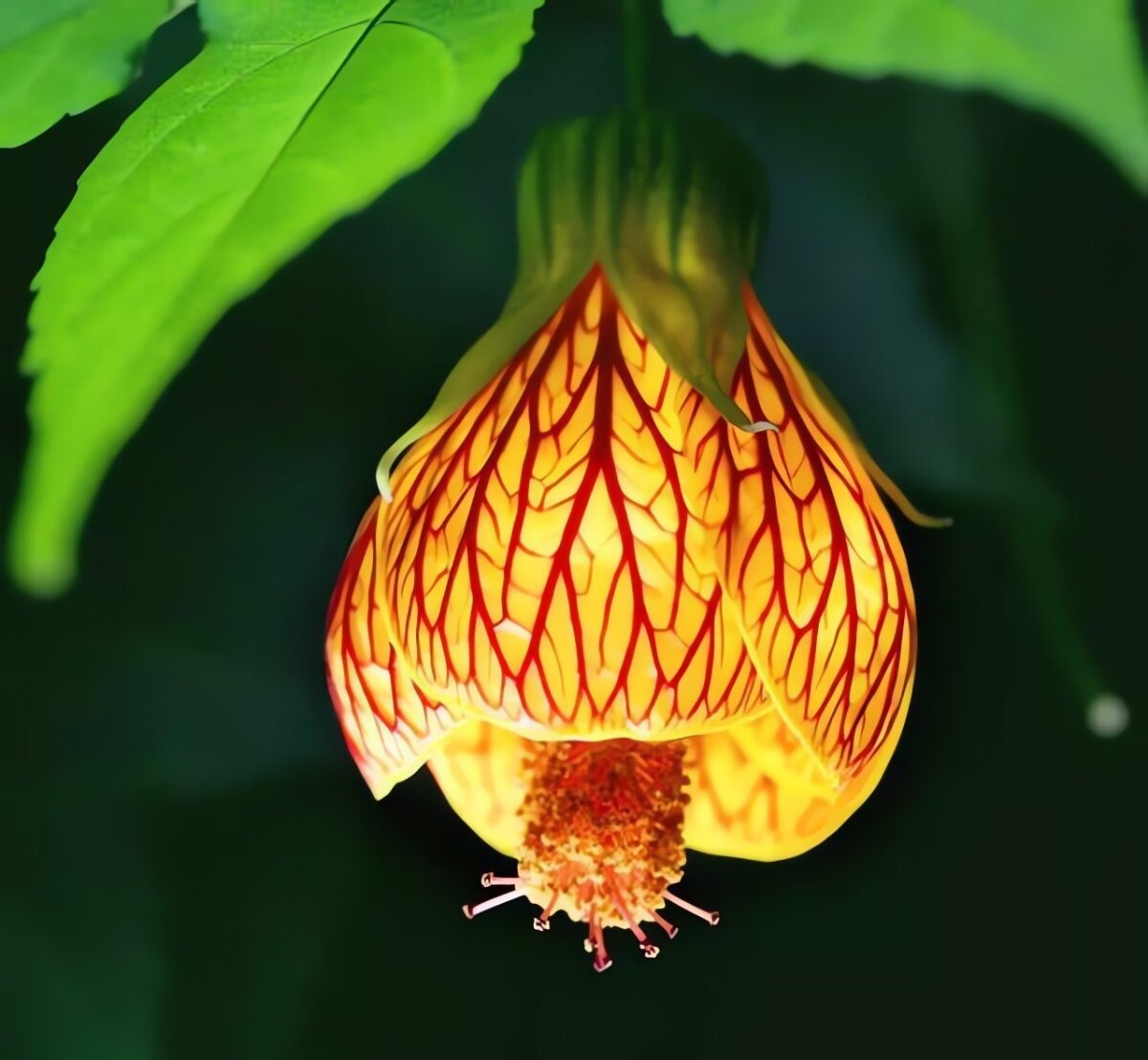 Cây cảnh này nở những bông hoa đèn lồng rực rỡ, tựa như những đường nét được thiên nhiên tỉ mỉ vẽ nên, chia cánh hoa thành những mảng mỏng manh.
