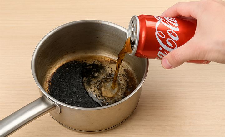 Mẹo làm sạch nồi bị cháy bằng coca cola vừa hiệu quả vừa rẻ tiền. (Ảnh minh họa: AI)