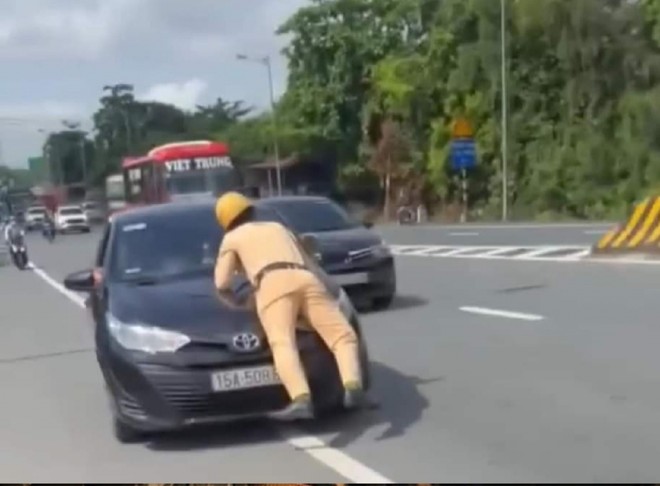 Old  Default Cảnh sát giao thông bị hất lên capo