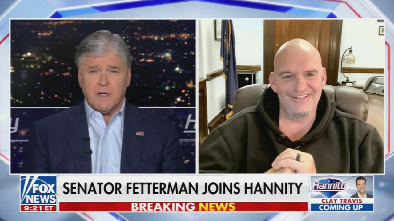 Cuối cùng, Hannity rất ấn tượng đến nỗi ông đă nửa đùa nửa thật đề nghị Fetterman gia nhập Đảng Cộng ḥa.
