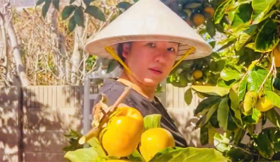 Diễn viên Thúy Nga tận dụng đất xung quanh nhà 800 m2 ở California để trồng cây ăn trái như hồng, bưởi, chanh, thỏa mãn sở thích làm nông.