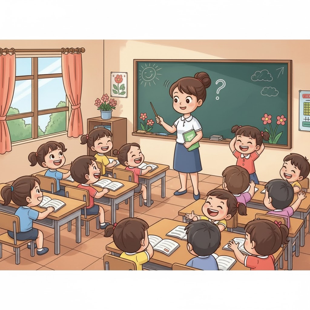 Trong một tiết học, cô giáo hỏi cả lớp: