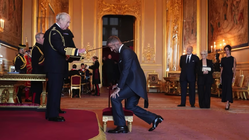 David Beckham đã được Vua Charles III phong tước Hiệp sĩ trong một buổi lễ trang trọng tại Lâu đài Windsor. Cựu đội trưởng tuyển Anh mô tả đây là “khoảnh khắc tự hào nhất” trong cuộc đời mình. Trong cùng buổi lễ, nhà văn – biên kịch gốc Nhật Bản tại Anh Kazuo Ishiguro và ngôi sao West End/Broadway Elaine Paige cũng được vinh danh.