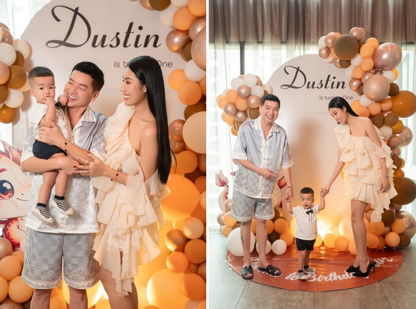 Theo như trong thời gian vừa qua, cặp đôi Quang Minh và Tăng Khánh Chi tích cực chia sẻ về cuộc sống gia đình trên mạng xã hội. Sau khi bạn gái kém 37 tuổi của Quang Minh mới đây vừa tổ chức tiệc sinh nhật đầu tiên cho quý tử Dustin tròn 1 tuổi. Trong loạt ảnh, người đẹp xuất hiện rạng rỡ bên bạn trai và quý tử. Cô diện chiếc váy màu kem với thiết kế lệch vai và nhiều tầng bèo nhún, tạo cảm giác mềm mại, nữ tính.