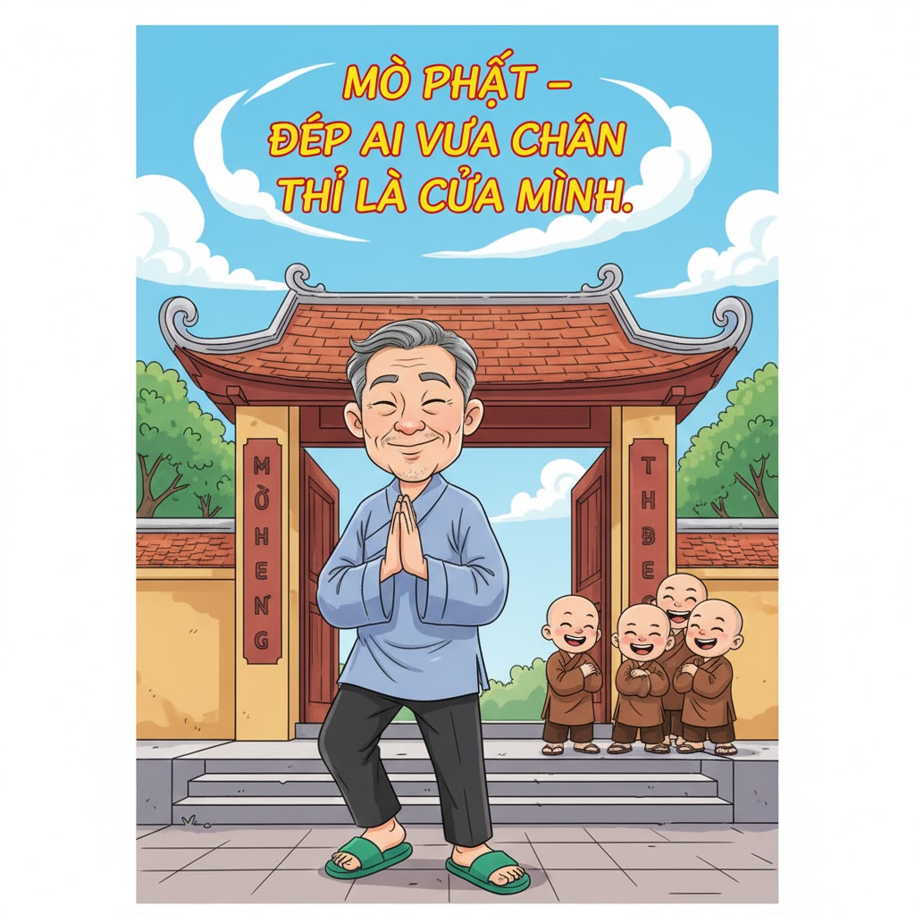 Ra đến cửa chùa, anh phát hiện… đôi dép của mình đã biến mất!