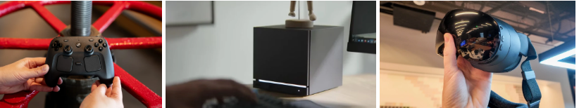 Từ trái qua phải: Steam Controller, Steam Machine và Steam Frame. Ảnh: The Verge/PCGamer/Valve.