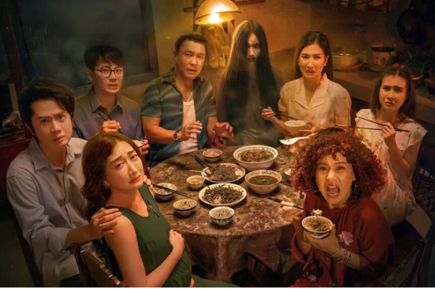 Sự trở lại của Lý Hùng sau gần 10 năm vắng bóng là điểm nhấn của dự án. Trong poster, anh xuất hiện cùng Cát Phượng và Quỳnh Lam trong một khung cảnh bữa cơm gia đình nhưng với biểu cảm căng thẳng, dường như đang bị một hồn ma mang thai bí ẩn ám ảnh.