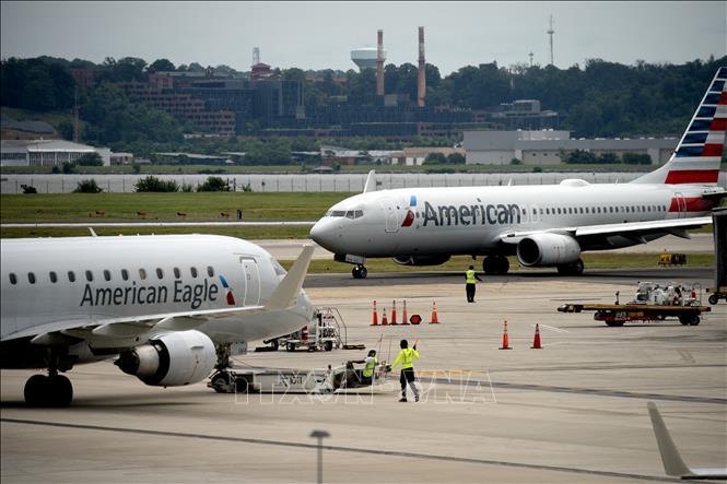 Máy bay của Hãng hàng không American Airlines và American Eagle tại sân bay ở Arlington, Virginia, Mỹ. Ảnh: AFP/TTXVN