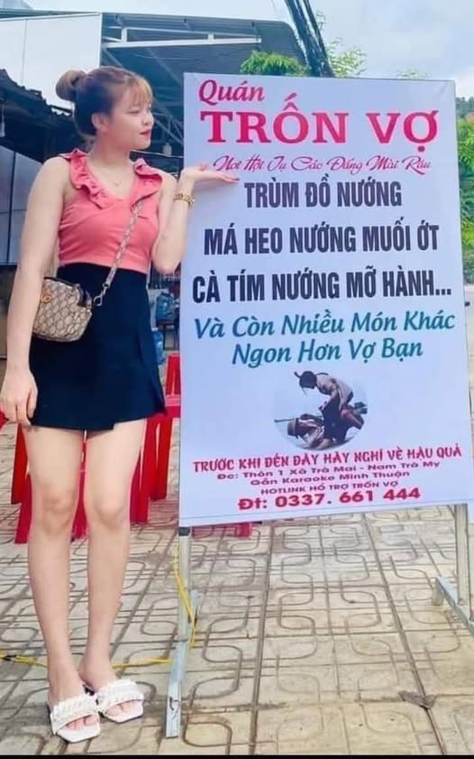 Một buổi chiều cuối tuần, anh Tèo rủ nhóm bạn đi nhậu. Đang chạy xe thì bất ngờ thấy một tấm bảng quảng cáo cực kỳ nổi bật: