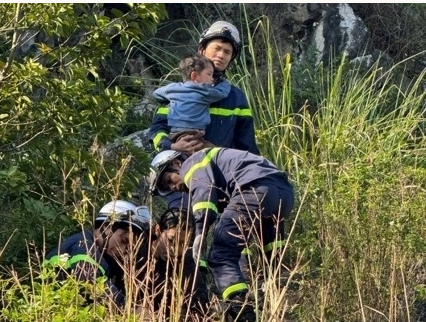Sau hơn 30 phút, cả hai cháu được đưa lên vị trí an toàn. Bé trai bị thương nhẹ vùng đầu và được băng bó tại chỗ; sức khỏe của hai chị em hiện đã ổn định.
