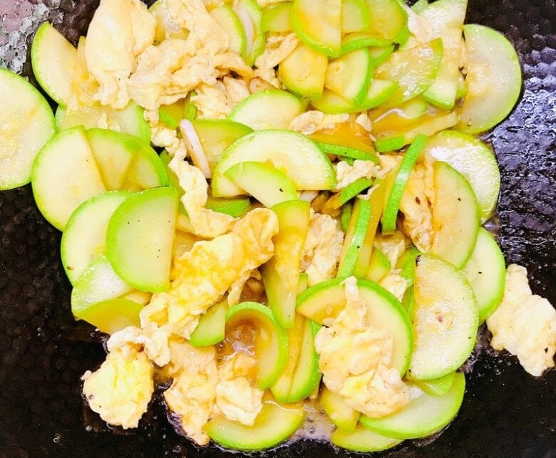 Nếu muốn trứng mềm hơn, hãy xào trứng khi dầu chỉ nóng khoảng 50%, xào chín rồi lấy ra; khi bí ngòi gần chín thì mới cho trứng vào lại.