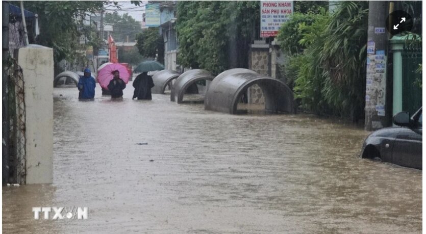 Khu dân cư Bắc Nha Trang ngập sâu. Ảnh: Đặng Tuấn/TTXVN.