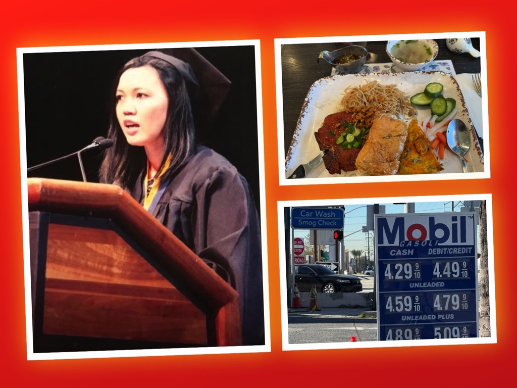 Cơm tấm thời Trump thì khác, gần như đứng yên bất động. Ghé San Gabriel mà không ăn cơm tấm Việt là một thiếu sót khó tha thứ. Dĩa cơm tấm đúng kiểu Cali: cơm không nhiều, hạt tơi vừa chín, miếng thịt nướng không to quá, tàu hủ ky thơm, trứng muối béo bùi vừa miệng. Giá dĩa cơm: 14 USD, không rẻ, nhưng cũng chẳng tăng so với thời Biden. Phở cũng vậy, một tô phở nghiêm chỉnh giờ nằm trong khoảng 14–16 USD. Nhớ lại mười năm trước, có lẽ dĩa cơm tấm như vậy chỉ khoảng 8 USD – một quãng cách đủ dài để thấy đồng tiền đã mỏng đi thế nào.