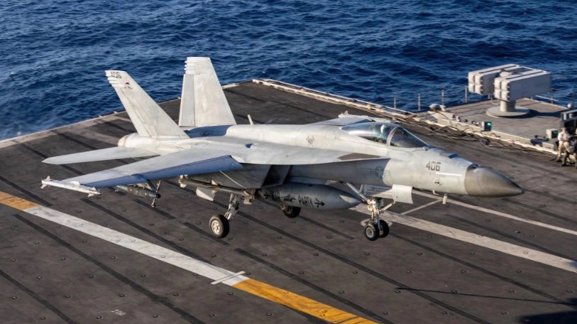 Tiêm kích F/A-18E hạ cánh xuống tàu sân bay Gerald R. Ford hôm 17/11. Ảnh: USN