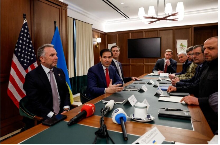 Phái đoàn Mỹ gồm Ngoại trưởng Marco Rubio, đặc phái viên Steve Witkoff và ông Jared Kushner - con rể Tổng thống Donald Trump. Phía Ukraine có Thư ký Hội đồng Quốc phòng và An ninh Quốc gia Rustem Umerov cùng Tổng tham mưu trưởng quân đội Andriy Hnatov.