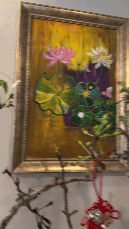 Tết là phải có mai có đào, Hoa hậu Đền Hùng đã nhanh chóng sắm ngay một cành đào để decor cho phòng khách của mình. Người đẹp không quên nhấn nhá thêm đèn lồng đỏ treo trên cành, chỉ một góc nhỏ như thế này cũng đủ thấy Tết đã ghé nhà.