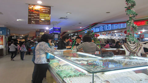 Dạo qua các cửa hàng vàng, bạc, đá quư trên phố Hàng Bạc, Hàng Bông, Khu thương mại Tràng Tiền, Khu thương mại Thăng Long, không khí mua sắm khá tấp nập.