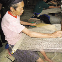 Đang mải “phiêu” theo những nếp hoa văn độc đáo, nhớ lại lời người đàn bà Mông nọ dặn ḍ cháu ḿnh, tôi chợt giật ḿnh bởi sự xuất hiện của một phụ nữ bên cạnh lúc nào không hay. Chị tên là Vàng Thị Mai, Chủ nhiệm HTX dệt lanh Hợp Tiến. Khi biết khách không t́m đến để mua hàng, người phụ nữ Mông vừa bước qua tuổi 50 này vừa tước những sợi lanh quấn quanh người, vừa nhỏ nhẹ kể về nghề dệt của dân tộc ḿnh.