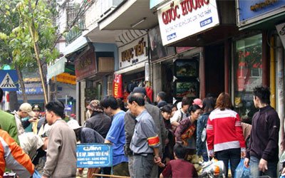Mặc dù giá cả năm nay đắt hơn hẳn so với năm ngoái do giá nguyên liệu thực phẩm tăng nhưng người mua hàng vẫn xếp hàng dài. Không chỉ có khách ở Hà Nội mà rất nhiều người ở tỉnh lẻ cũng mua mang về quê ăn Tết.
