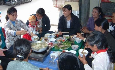 Chuyện ăn uống cứ thế diễn ra suốt mấy ngày Tết. Nhiều khi chạy sô, một buổi ăn đến 3 bữa ở 3 nhà khác nhau. Vừa ở nhà này ăn thịt gà, bánh chưng, nem rán, sang nhà khác lại nem rán, thịt gà, bánh chưng. Bọn trẻ ngắc ngoải không ăn được ǵ, càng chán.