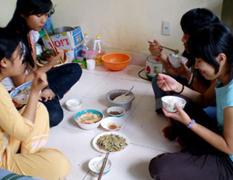 Ban ngày, để tránh "va chạm" và tiết kiệm tiền điện, ai nấy đều lên thư viện hoặc pḥng tự học, đến bữa mới về đi chợ, nấu cơm.