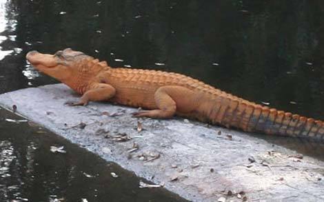 Sylvia Mythen, một phụ nữ 70 tuổi từ Venice, Florida (Mỹ), đã phát hiện con cá sấu màu da cam đầu tiên trên thế giới. Khi đang trên đường lái xe từ nơi làm việc trở về nhà, bà bất chợt nhìn thấy con cá sấu có màu sắc kỳ lạ và dừng lại. Sau khi gửi các bức ảnh do mình chụp tới kênh tin tức địa phương, bà Mythen cũng liên lạc với một nhà sinh vật học - người tin rằng con cá sấu thực sự mắc chứng nửa bạch tạng. Nhà sinh vật học nói rằng ông chưa bao giờ nhìn thấy hoặc nghe nói về một trường hợp nào như vậy trước đó. Tuy nhiên, Gary Morse thuộc Tổ chức bảo vệ Cá và Động vật hoang dã Florida nhận định, màu cam có thể xuất phát từ một yếu tố môi trường nào đó.