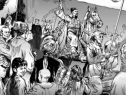 Tranh tái hiện cảnh đoàn quân nhà Trần chiến thắng quân Nguyên Mông trở về.