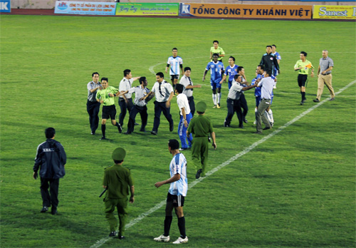 Thua trận, cầu thủ Hà Nội ACB uy hiếp tổ trọng tài