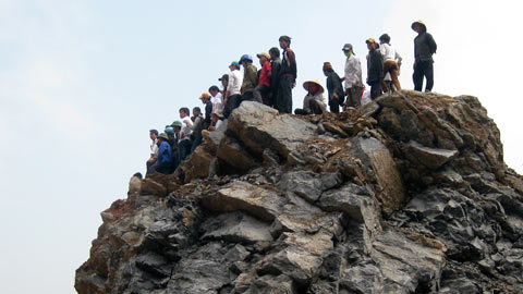 | Phía ngoài, hàng trăm người dân, trong đó có rất nhiều người nhà của nạn nhân vây kín, theo dõi cuộc tìm kiếm.