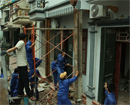 | | Các công nhân đang tiến hành lắp đặt các kích vào ngôi nhà |  | | Những chiếc kích đầu tiên được lắp đặt |