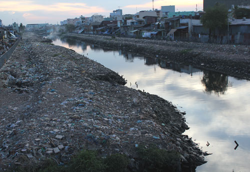Con rạch Ụ Cây chạy song song đường Võ Văn Kiệt đang được khơi dòng.  Màu nước đen, đặc sệt và mùi hôi thối cũng dần giảm đi. Cùng với sự phát  triển của TP.HCM qua hơn 30 năm sau ngày giải phóng, hàng chục xóm nhỏ  ven kênh cũng đang dần đổi thay...